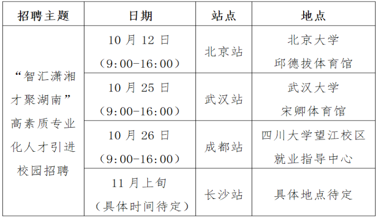 一、湖南省农村信用社联合社2026年度校园招聘站点安排