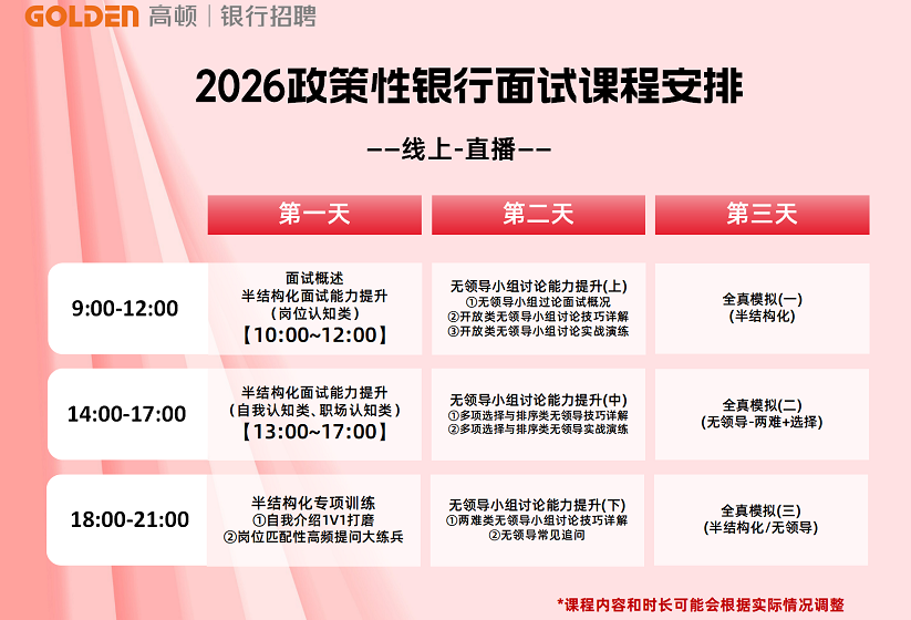 “2026国家开发银行面试培训班推荐,首选高顿银行面试班!”的全部内容了,面试备考时间比较紧,高顿