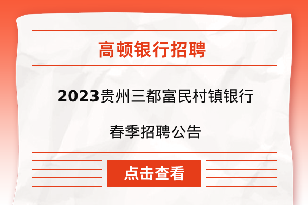 贵州三都富民村镇银行官网:2023贵州三都富民村镇银行春季招聘公告