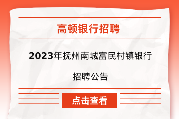 江西抚州富民村镇银行春季招聘_2023年抚州南城富民村镇银行招聘公告