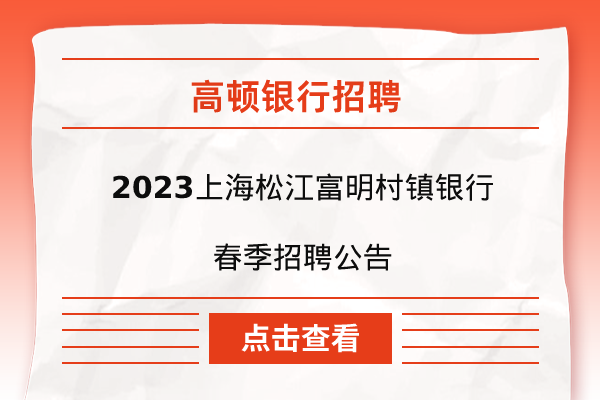 近日2023年上海富明村镇银行招聘公告发布了,此次上海富明村镇银行招聘提供银行职位众多,符合招聘岗位条件的考生现在可以报名了!本文整理了上海富明村镇银行社会招聘的招聘岗位及职责、招聘岗位要求、报名官网入口等其他信息。...