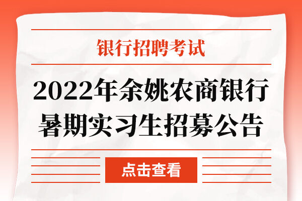2022年余姚农商银行暑期实习生招募公告