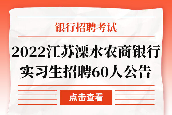 2022江苏溧水农商银行实习生招聘60人公告
