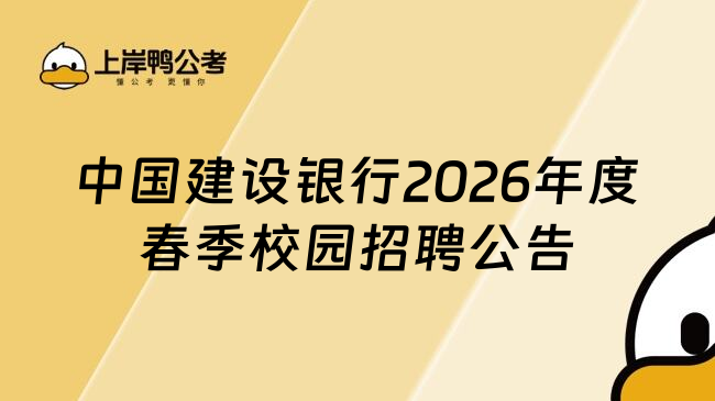 中国建设银行2026年度春季校园招聘公告正式发布!本次春招面向境内外普通高等院校大学本科及以上学历的毕业生,报名截止时间为2026年3月31日24点,笔试初步定于2026年4月中旬举行,以下是招聘公告内容。...