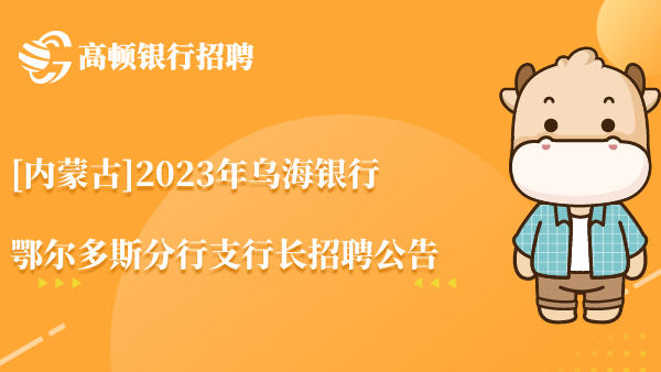 [内蒙古]2023年乌海银行鄂尔多斯分行支行长招聘公告