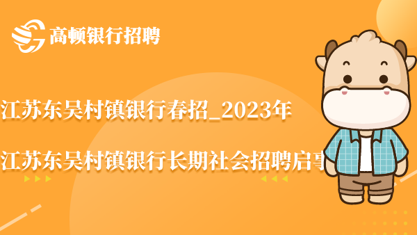 江苏东吴村镇银行春招_2023年江苏东吴村镇银行长期社会招聘启事