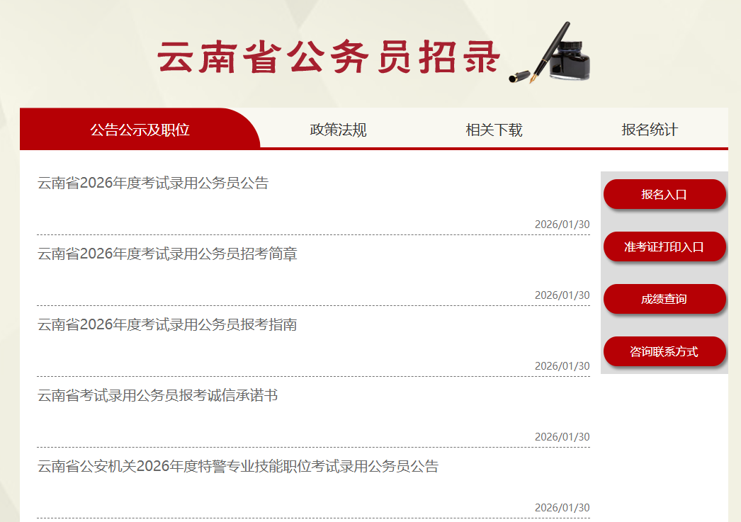二、2026云南省考报名入口