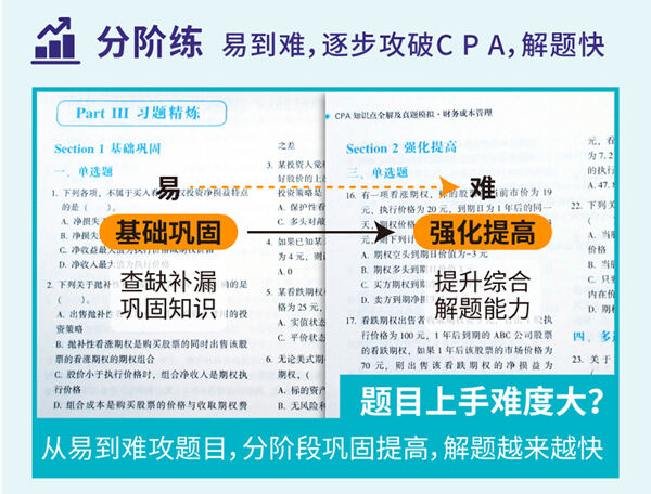 易到难,适应不同基础考生,确保各个水平的考生都能得到合适的练习。