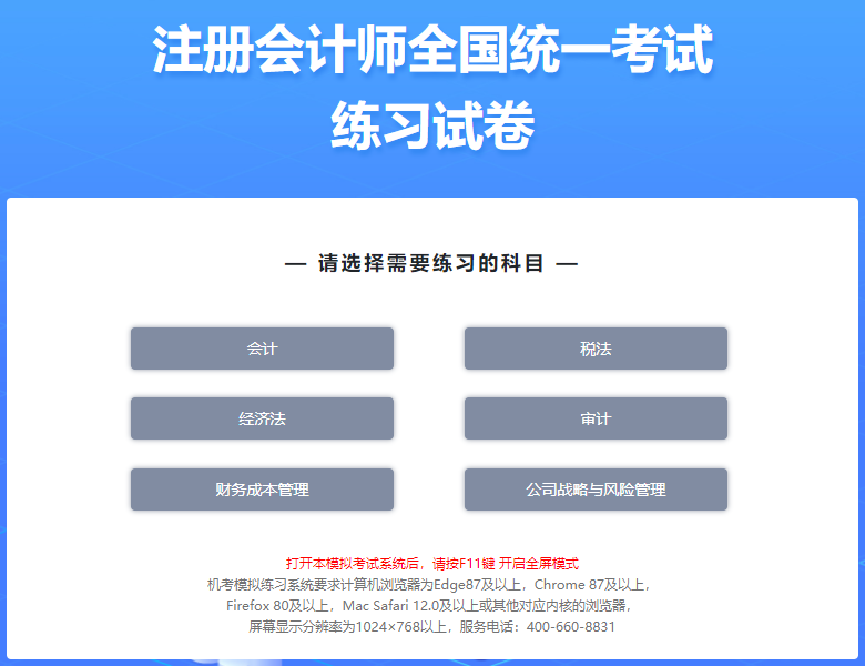 中注协开通注册会计师考试机考练习网站(http://cpademo.cicpa.org.cn)。报名人员可登录练习,熟悉机考环境和电子化试题形式。机考模拟系统已开通,可通过上述地址进入模拟,以下是机考示意图: